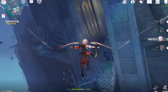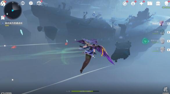 1、首先前往遗迹,使用“风之翼”进行一段非常长的距离非常,飞到下一块空岛地区会有点困难,可以尝试在图中的位置“断桥残骸”处着落。