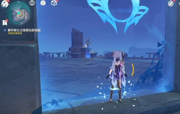 2、启动蛇心之地的祭坛密文,解开蛇心之地祭坛的谜题,将传送点附近的日月调至至常夜状态,观察建筑物中间地上画着的键纹图案和对应的数字顺序,依次触碰建筑物周围印有键纹图案的屏障,随后就会出现一个精致的保险,打开后获得碎片。