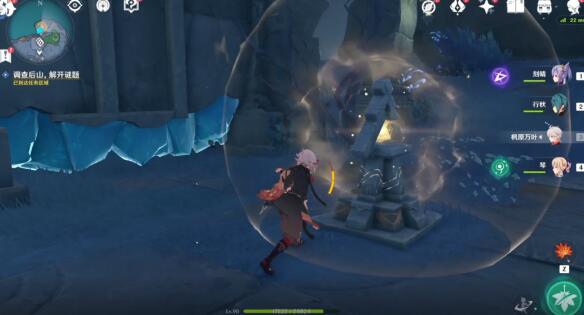 10、当任务指引状态更新到:前往大日御舆前的断桥处,在引导区域与渊上对话,随后解除屏障。