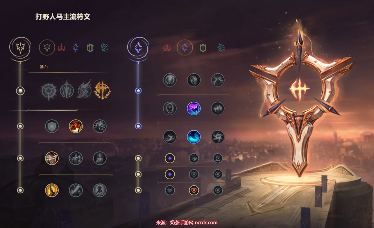 由于人马拥有E技能和R技能,一般情况下不需要带闪现。你可以选择疾跑或点燃。目前较主流的选择是疾跑,因为配合人马的E技能和被动,你的gank效率会大大提高,而且支援速度也能得到保证。