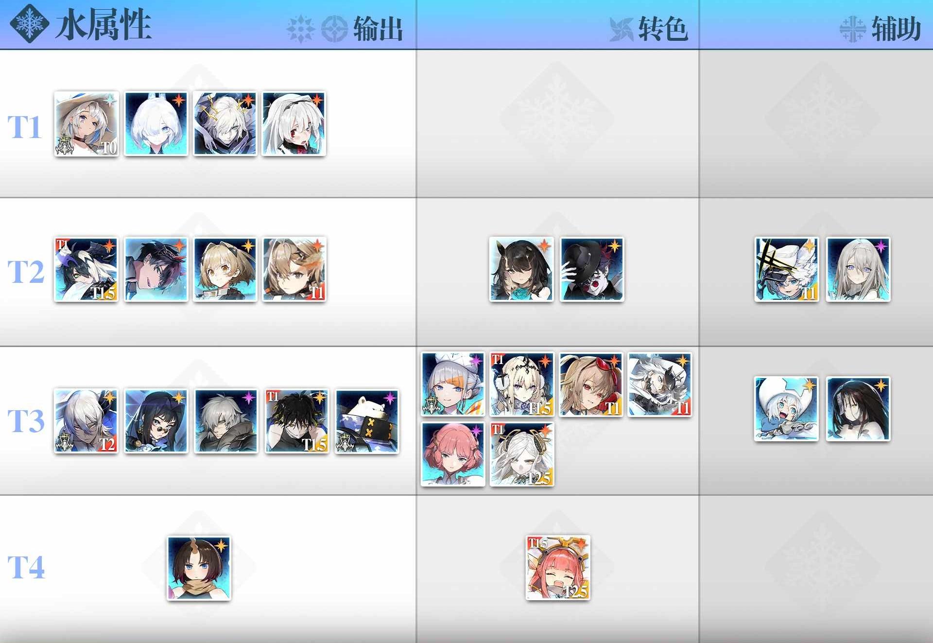 1、卡莲:主和副都是水,主要通过卡池抽取获得。其技能不仅可以瞬移到指定地方,还可对纵向一列有不错的攻击伤害效果,攻击范围里的格子还可转化成水属性哦!