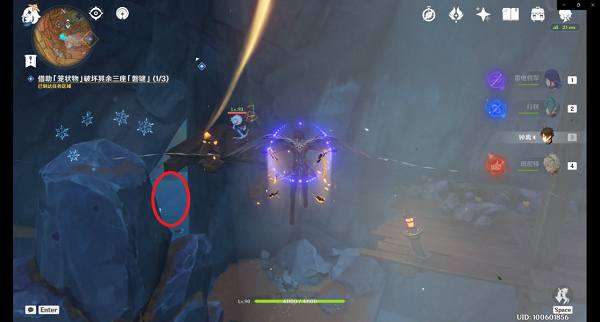 到达第三处「磐键」后可以击碎此大型碎石(里面是一个跳跃平台)快速到达上方
