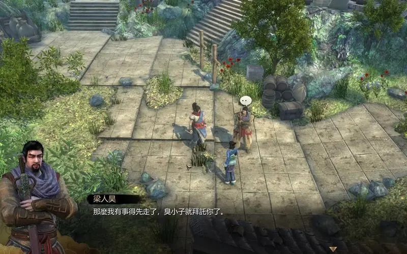 用掉三个包子:酒肉包子、发霉的馒头(八卦震3阶)、小笼包,分别得到布条123,与包子店老板对话得槁木新生丸x2,回去,【八卦兑1阶】发现小女贼,战斗,回去,对战,对师父右键使用【醉仙酿】,好感+40。