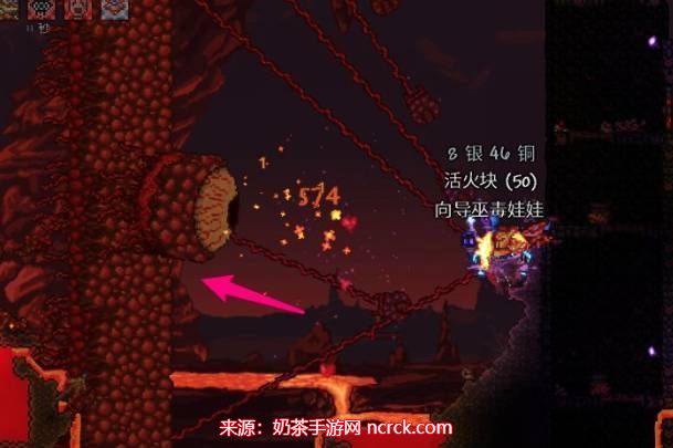4、将向导娃娃扔进岩浆中,杀死出现的肉山。
