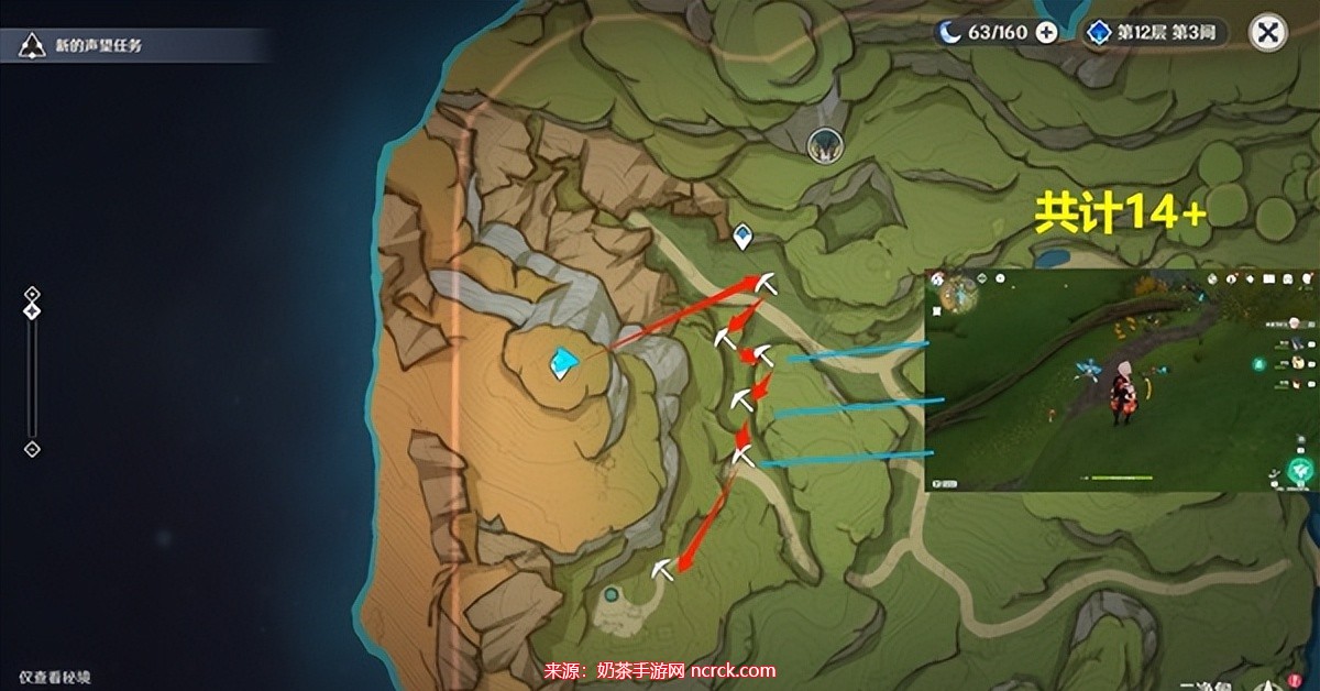 奥藏山为璃月的矿石宝山,整座山体浑身是宝,大大小小的白铁块到处可见,只不过有些白铁块会位于山巅与悬崖之间。
