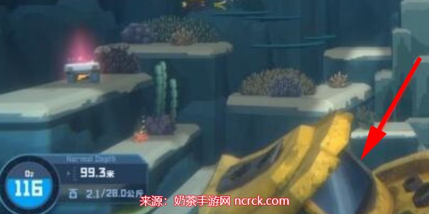 1.我们在进入海底切换为潜水模式,然后一直向右游到第一个海峡洞口出;