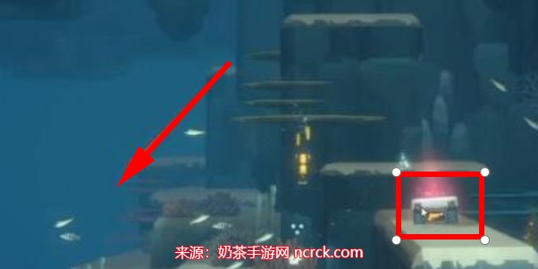 3.有过一段距离之后就会发现分岔路口,这时候我们先左侧游,不过有一个宝箱小伙伴们不要忘记拿了哦;