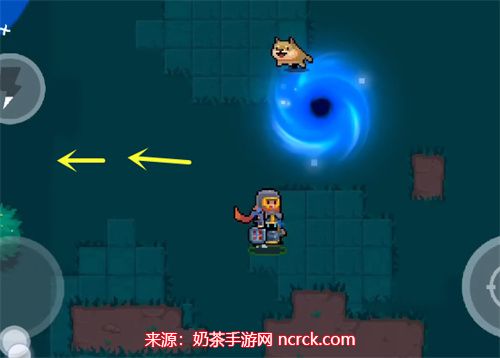 2、在清理完关卡后,会出现一个蓝色旋涡,请注意不要进入旋涡,而是继续向左侧走,这样你将进入金矿房间。
