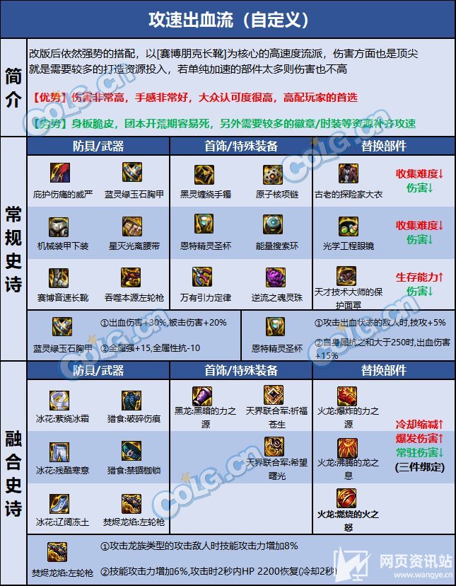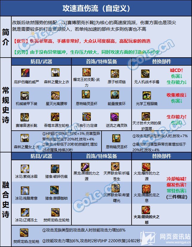 【配装特点】改版后依然强势的搭配,以赛博鞋为核心的高攻速流派,伤害方面也是顶尖,不过需要较多的打造资源投入