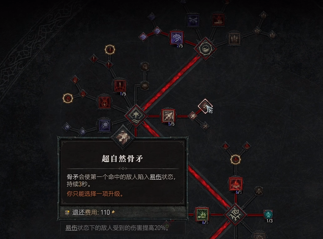 分支技能点出“超自然骨矛”,命中对手时造成易伤效果。