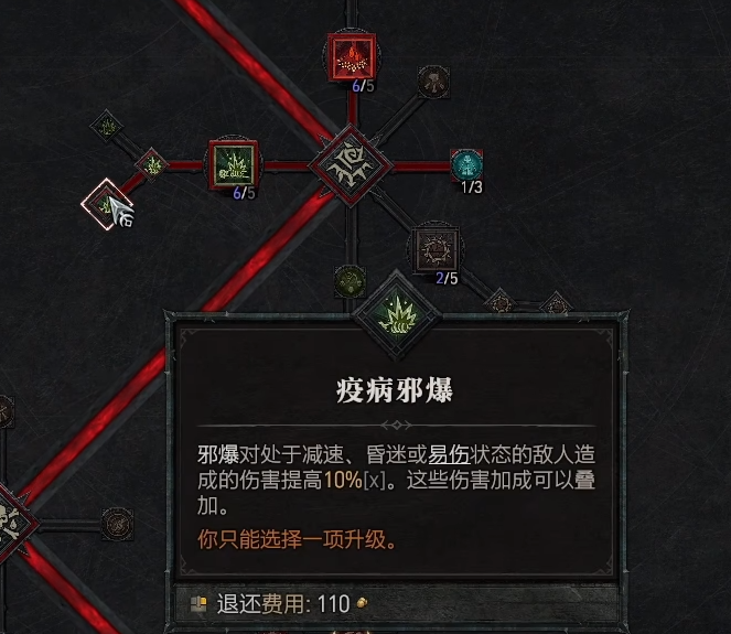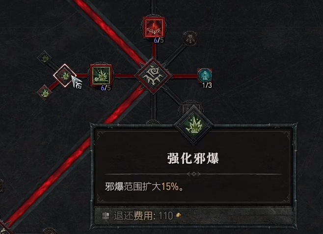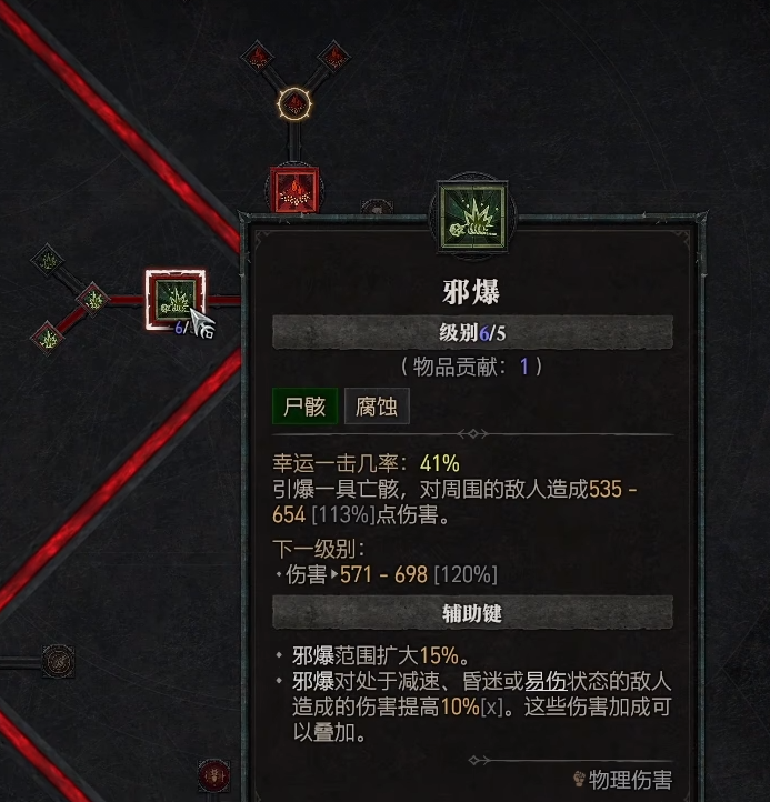 5、邪爆(加5点),流派主要输出技能,引爆骸骨,对周围对手造成伤害。