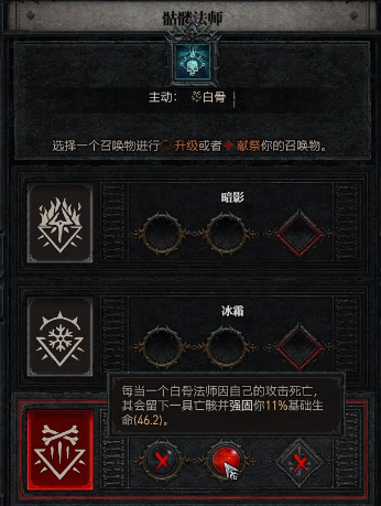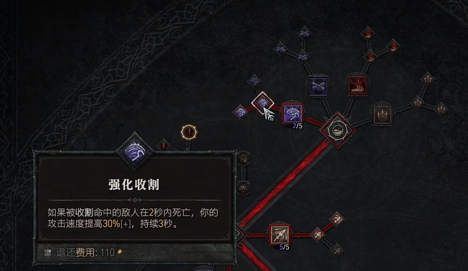 分支技能点出“助祭的收割”,收割对手时生成新的骸骨。