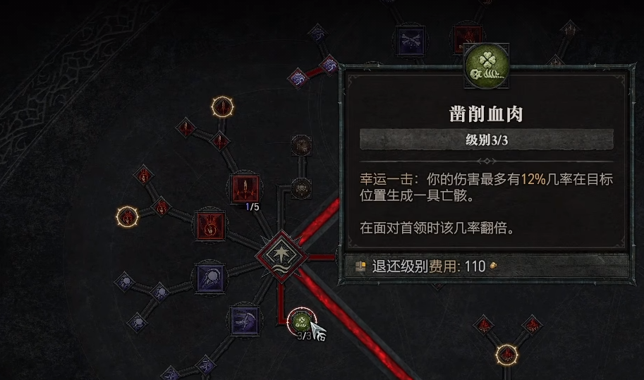2、凿削血肉(加3点),有幸运一击效果,有概率在目标位置生成新的骸骨。