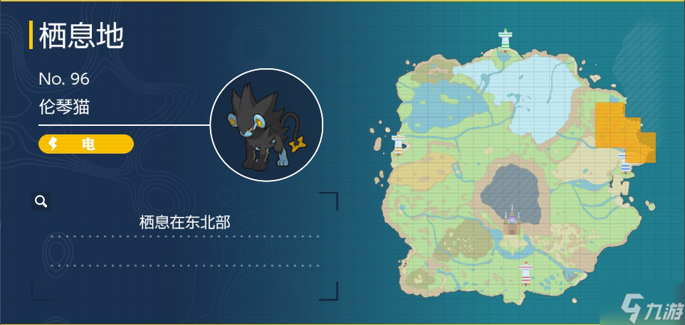伦琴猫是电属性的宝可梦,是小猫怪的最终形态,而想要抓伦琴猫可以去地图的东北部的酿光市的北部,具体分布区域如下图。