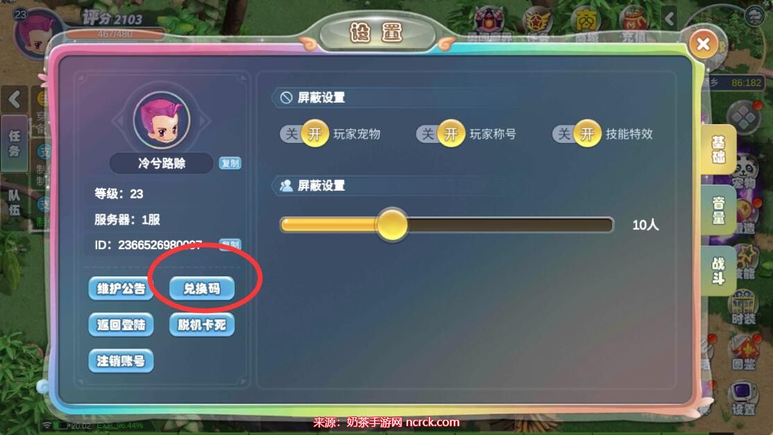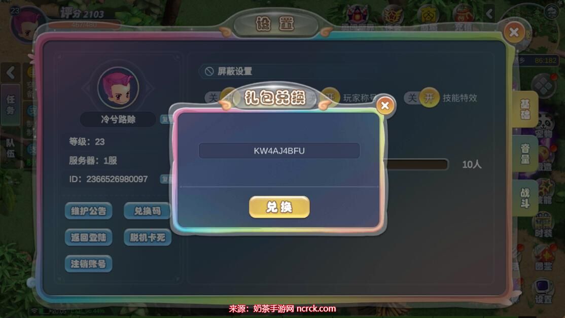 2、在设置菜单中,您会注意到一个"兑换码"的选项,位于ID信息之下。
