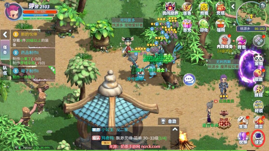 1、打开幻灵大冒险,进入游戏界面,在右下角找到并点击设置图标。