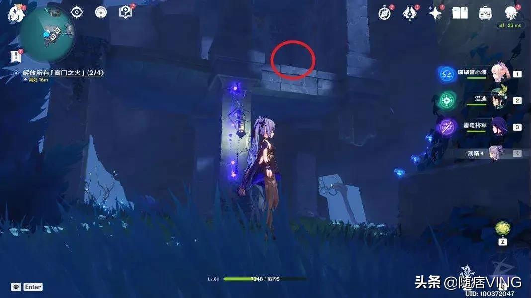 6、最后一个火炬位于西侧房间的楼顶,岩元素角色或者风元素角色垫高点就可以了