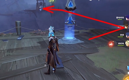 首先来到【崎岖石厅】位置如下所示,过来之前接取任务【崎岖石厅激活机关】、【九霄之石悬残片】。