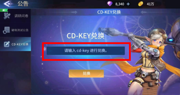3、点击弹窗左侧的CD-KEY兑换,将兑换码输入。