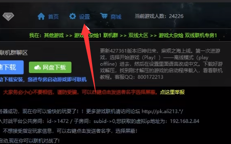 2、打开平台并进入后,随便挑一个游戏进入,然后点击上方“设置”