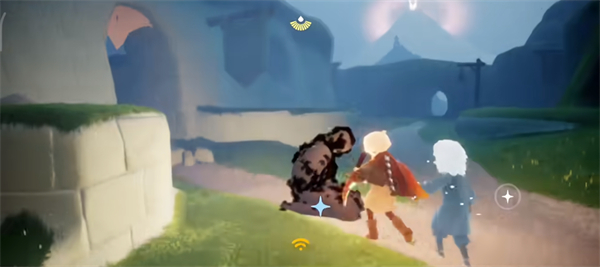 4、看完动画以后带着先祖一直往前走,这个需要被唤醒的石像就在蓝色星光所显示的位置;