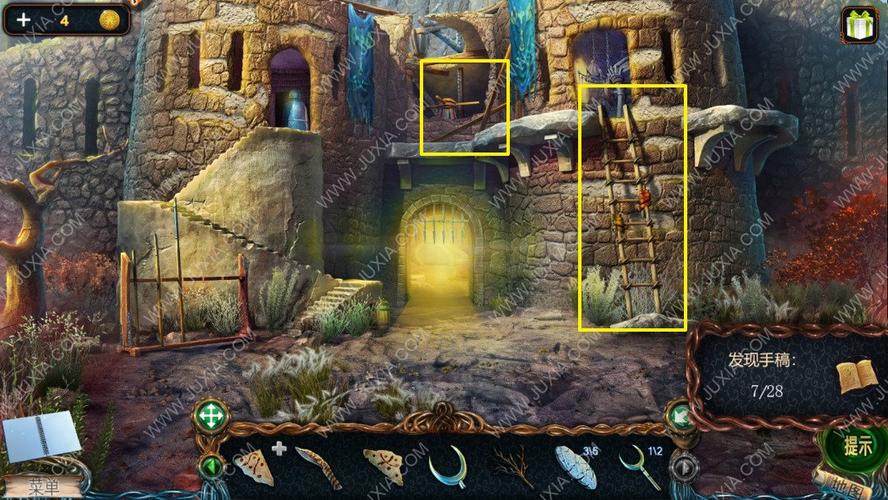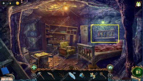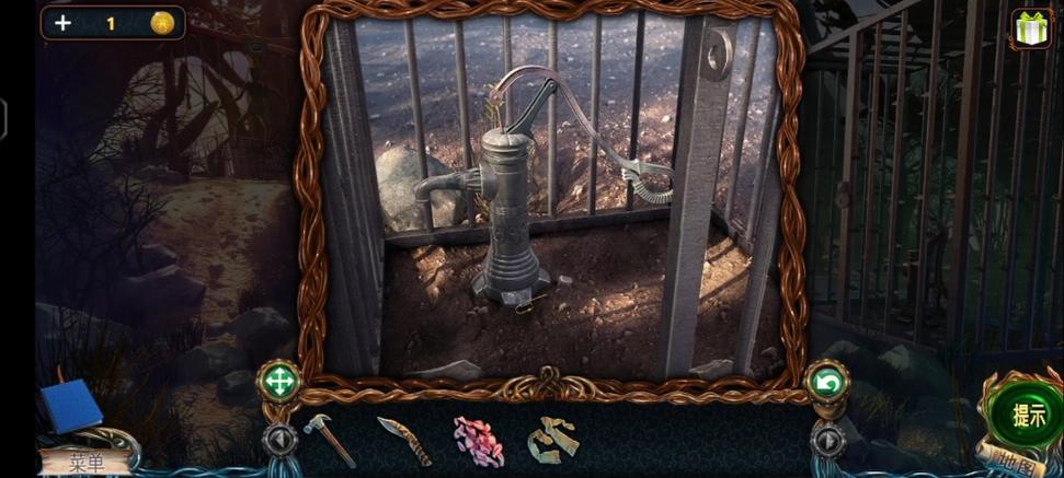 首先我们来到了地库的第一关,需要我们做的是寻找到出口。在进入到房间后,可以看到门上的锁,钥匙在门上的一个盆子里,盆子下面是一个方块,需要先将盆子移开,再拿到钥匙开门。在房间中间的台子上,有一把锤子,需要将它拿起来。锤子旁边的木箱子,需要用锤子打开,打开后可以获得一把尺子和一把刀。