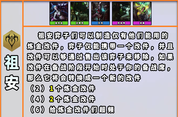 祖安棋盘一览:金克丝(2)吸血鬼(2)诺克(3)厄加特(4)泽丽(4)