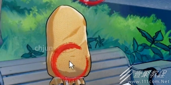2、接着出现选项,我们选择答应;然后来到公园场景中,点击对象的腿,远处的商贩,对象头上的麻袋,椅子上的食物,椅子上的剪刀;