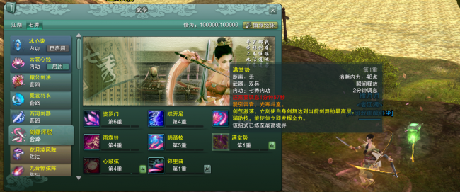 满堂势:双心法都能使用的技能,能够让剑舞瞬间达到第10层,对于瞬息万变的战场,这个技能用好时机效果非常大。