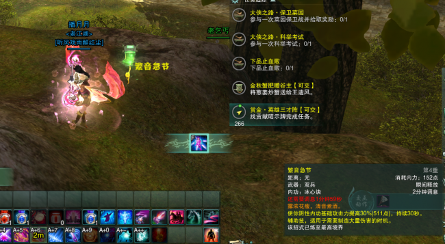 繁音急节:持续30秒的强力增伤技能,用于急需大量输出或者收割残血敌人时使用,需要注意的是它提升的是基础阴性内功攻击力,所以各种七秀冰心装备需要往阴性内功会心,会心效果等方向增加。