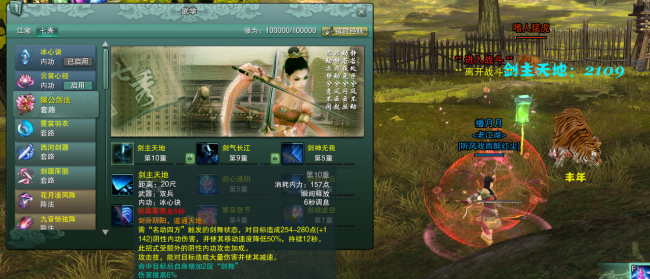 剑主天地:高伤害技能,由于受到阴性内功伤害加成,最终伤害相当可观,同时还能使敌人减速,结束增加2层剑舞。与玳弦急曲一样,属于基础输出技能,缺点是cd有6秒。