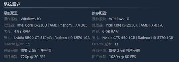 游戏属于小体量的类型,对于电脑配置需求不高,低配电脑也能够流畅运行。