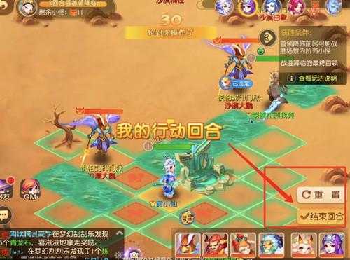 轮到自己操作后,右下方会显示回合结束和重置按钮