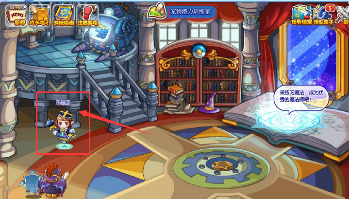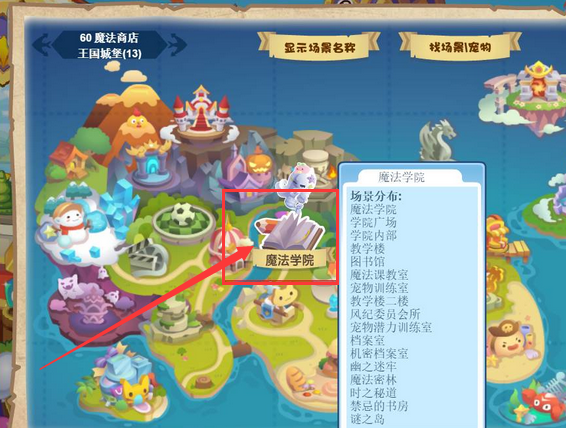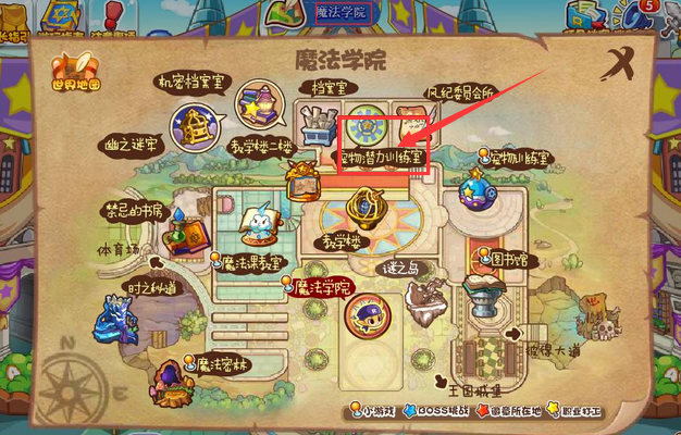 3、可以在魔法学院的上方看到宠物潜力训练室。