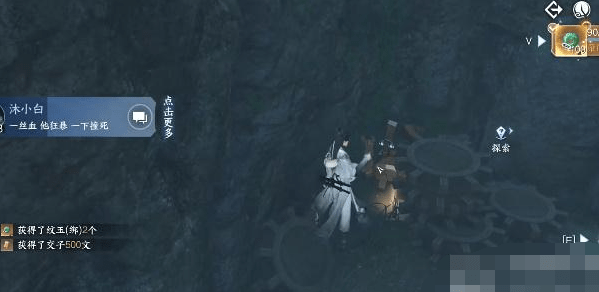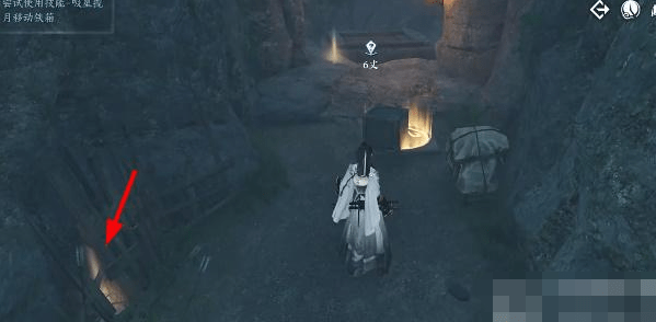 紧接着跟着蝴蝶走,隔着大门使用吸星揽月技能打开大门,在下图位置可以找到第三份。