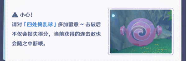 3、如果不小心击中四处捣乱球,将会被扣除积分,当前连击数断开(所以玩家在连续射击的时候要注意这个紫色球)。