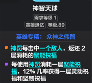 作用:神罚每击中一个敌人,返还2+层消耗的聚能祝福以及每使用神罚消耗一层聚能祝福,X% 几率获得一层灵动祝福和坚韧祝福的追忆。