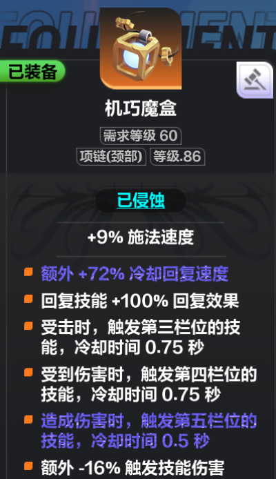 装备:【灾厄面具】增加攻速和施法速度,可以接受增加冷却速度。