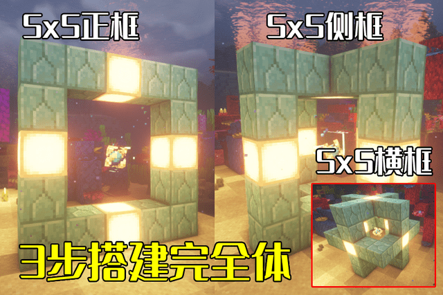 先利用海晶石等方块制作出一个正面5x5的框架,随后将潮涌核心放置在中间处,此时的潮涌核心便会开始初步激活,随后再如法炮制制作出侧面以及横截面的2个5x5框架,此时便是完整版的启动框架,而潮涌核心也处于完全激活的状态。
