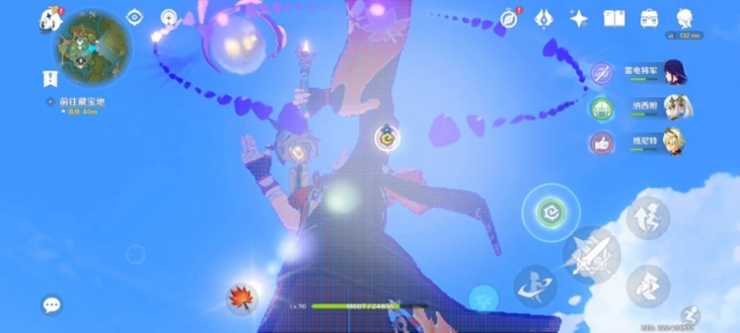 乘上去以后视角转向东方向,然后等待摩天轮升高,到一定高度以后,就可以看到这里有四叶印通向东边的浮空岛,这时我们通过四叶印路飞过去即可到达藏宝地。