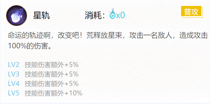 技能一:星轨(0火)