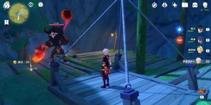 地图指引传送幽思闪念旋步舞活动,按图中指引路线走,之后需通过丘丘人平台的升降梯,前往聚流映灯2。