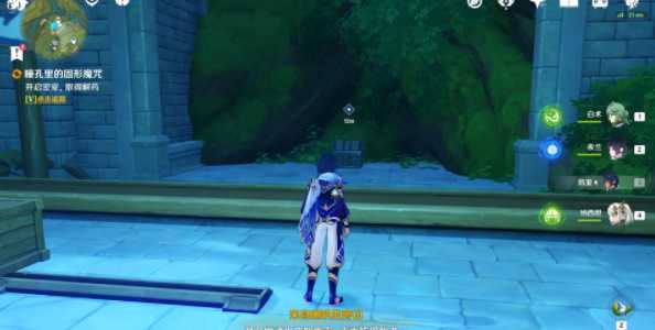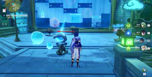 1、首先我们需要完成地图开图的前置4个任务之后,我们来到寄想者剧场,对应下图标记单位位置,我们可以看到一个小水珠,我们需要进行对话;