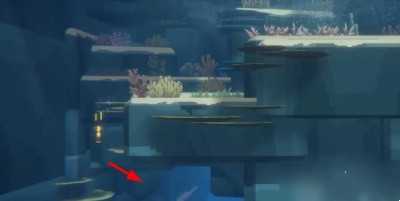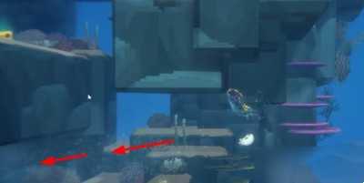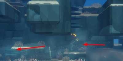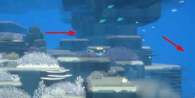 1、完成支线任务【调查可疑珊瑚】后从章鱼洞穴出来,往下图标记方向方向游;
