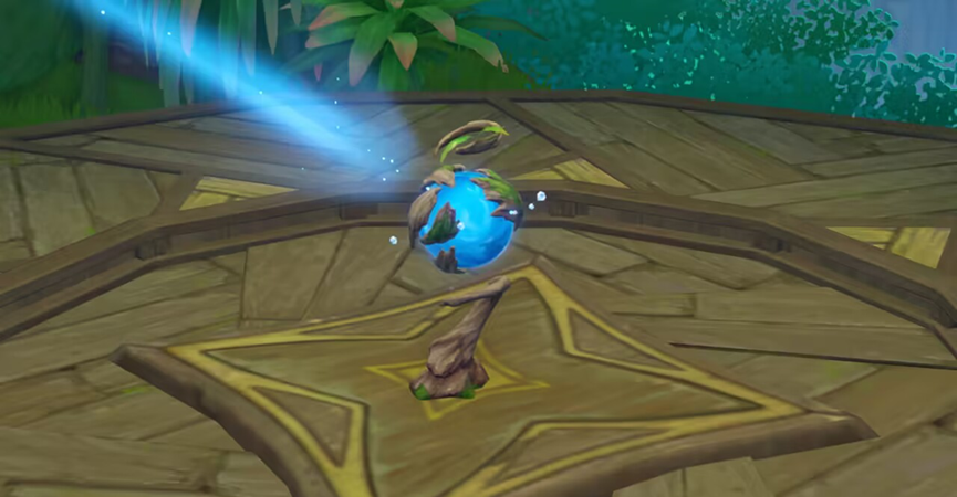 在入口,莱斯格见到了作为琉形蜃境核心的聚流映灯。他觉得这个装置跟七岁时祖父送他的星仪十分相像,好奇它能不能转动,就伸手触碰了聚流映灯。谁知道,天地因此翻转了一下,聚流映灯的一些零件丢失,核心轮毂(hú)也不再转动。