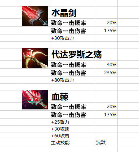 代达罗斯之殇首选,水晶剑和血棘暴击参数一致!