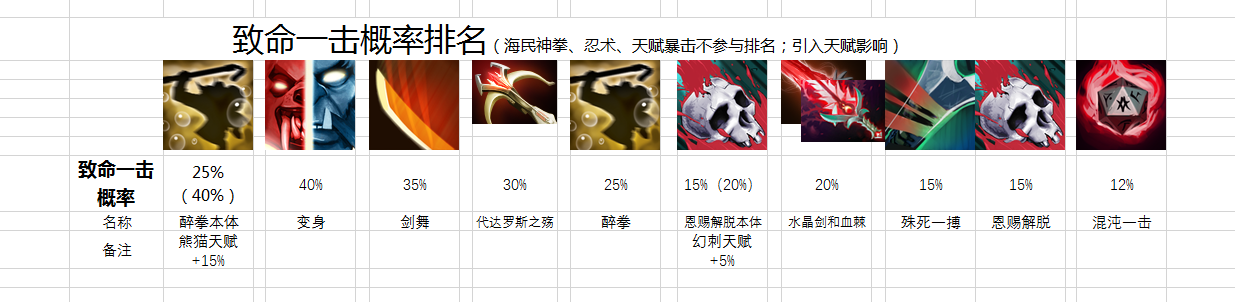 暴击概率排名(暴击看脸,强弱不分先后):