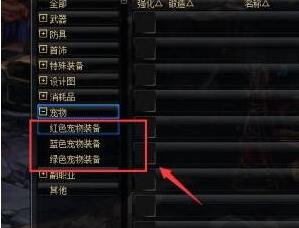 5.然后我们在里面选择红色宠物装备、蓝色宠物装备、绿色宠物装备的一个进行搜索;