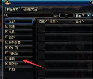 4.然后我们在拍卖行里面点击左侧的【宠物】选项;