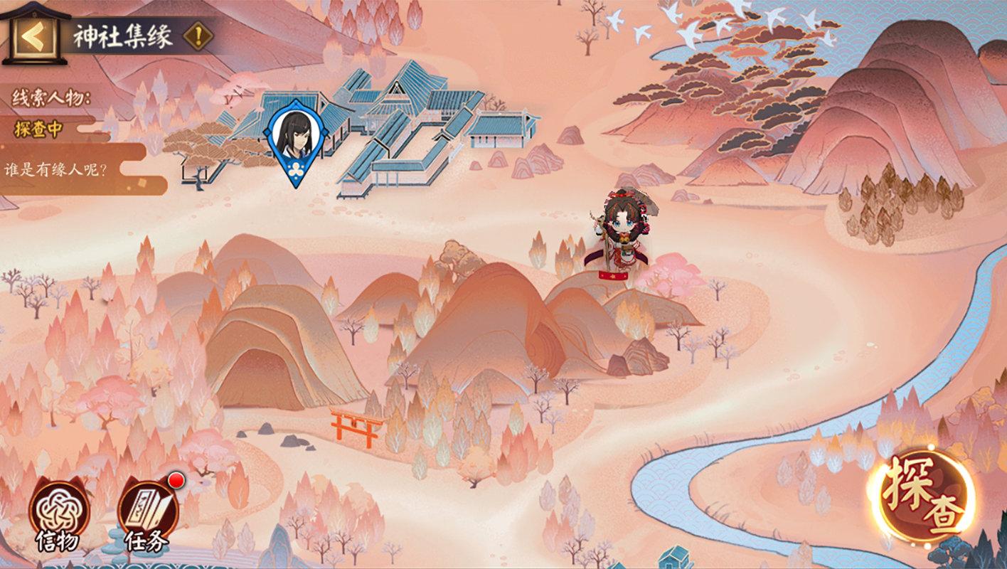 ※每日将有不同民众前往神社祈求缘分,大人需要使用罗盘探查地图,到达指定地点后,通过与民众对话获取爱好信息。